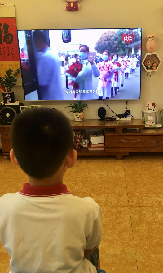 在每個班級的黑板上,班主任早已設(shè)計了圖文并茂的歡迎板報。上午第一節(jié),班主任和同學們進行了簡單的互動后,就進入了“復學第一課”的學習。這一課共有兩個內(nèi)容的學習,第一個是《天使歸來 英雄開講》英雄故事講述。課程通過中山援鄂抗疫英雄第三批醫(yī)療隊隊長陳智偉和中山支援湖北第一批醫(yī)療隊隊員魏翠云兩位抗疫英雄的親身講述,讓同學們真切的感受到醫(yī)護人員和全國人民與新冠肺炎病毒艱苦斗爭的歷程,從中理解英雄的含義,引導學生崇敬英雄、學習英雄。