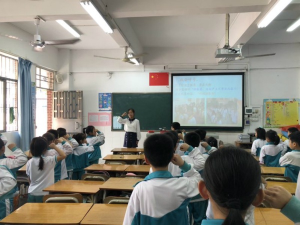 本次隊(duì)前教育活動,大隊(duì)輔導(dǎo)員羅老師首先通過幻燈片的方式,給學(xué)生講解了少先隊(duì)的隊(duì)名、隊(duì)旗、標(biāo)志等基本知識。接著,羅老師給學(xué)生們示范如何佩戴紅領(lǐng)巾、呼號和敬隊(duì)禮。一年級的學(xué)生認(rèn)真聆聽,用心模仿,興趣高漲。部分學(xué)生還走上講臺來給其他孩子示范如何佩戴紅領(lǐng)巾,正確的行一個標(biāo)準(zhǔn)的隊(duì)禮。之后,羅老師給學(xué)生展示了如何書寫“入隊(duì)申請書”以及注意的事項(xiàng)。本次活動在“隊(duì)前知識我知道”小搶答活動中圓滿畫上句號。從孩子們一張張滿足的笑臉中,可以看出本節(jié)課他們收益匪淺,感受到他們對少先隊(duì)組織的向往。