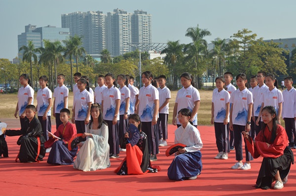 2019年11月13日上午,開發(fā)區(qū)一中第十六屆校運會開幕。入場式成為最奪目的年度校園文化盛宴,也是展示班級文化的快樂嘉年華。學(xué)生評委團(tuán)交叉給各班入場式表演打分,充分展示了學(xué)校一以貫之的自主教育辦學(xué)模式。初一年級的入場式主題是“中國名著”,初二年級的入場式主題是“外國名著”,初三年級的入場式主題是“理想”。各班圍繞主題,編排了形式多樣的三分鐘表演節(jié)目。