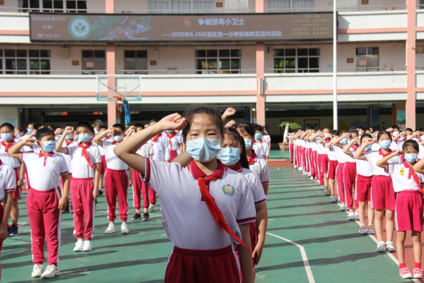活動最后,開發(fā)區(qū)第一小學的全體學生在黃玲輔導員的帶領下進行了莊嚴的禁毒宣誓,用堅定的宣誓表達了珍愛生命、抵制毒品、參與禁毒的決心。本次活動不僅提高了學生識毒、防毒、拒毒的認識,而且增強了青少年珍愛生命、遠離毒品的自我保護意識;也使開發(fā)區(qū)第一小學的禁毒教育真正做到從學生教育入手,將禁毒宣傳教育真正落到實處!