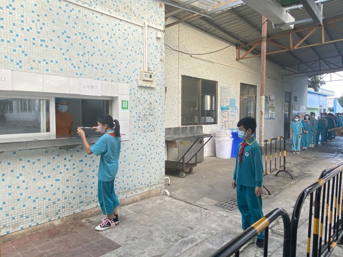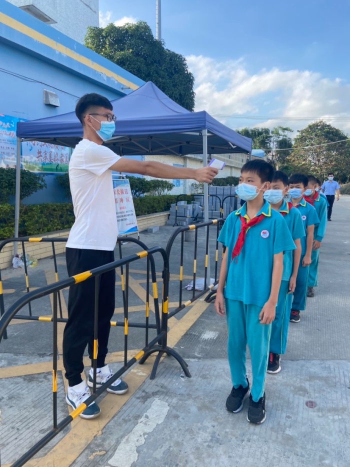 下午3:30點(diǎn),演練正式開始,陸銳勛校長(zhǎng)為本次演練的總指揮;本次分為4個(gè)主要的演練內(nèi)容,第一:早上乘校車演練;乘車學(xué)生戴好口罩,學(xué)生之間前后保持1米距離排隊(duì)候車,校車跟車員按順序?yàn)閷W(xué)生測(cè)溫,體溫正常(低于37.3度)才允許乘車。第二:師生進(jìn)校演練;師生佩戴好口罩,有序地排隊(duì),然后依次測(cè)溫進(jìn)校。如發(fā)現(xiàn)學(xué)生體溫異常,應(yīng)急處置老師聯(lián)系衛(wèi)生應(yīng)急處置員,衛(wèi)生應(yīng)急處置員將體溫異常的學(xué)生帶到隔離室復(fù)測(cè)體溫,體溫是異常的應(yīng)致電班主任,并按衛(wèi)生應(yīng)急處置員按流程規(guī)范處置。第三:食堂就餐演練;上午放學(xué)后,當(dāng)班老師組織本班學(xué)生排好隊(duì)戴好口罩向食堂出發(fā),原則上按低年級(jí)到高年級(jí)順序安排領(lǐng)餐餐,學(xué)生進(jìn)入飯?zhí)煤螅辞昂笙喔?米排隊(duì)領(lǐng)餐,取餐后回到各自的教室座位就餐。第四:午休測(cè)溫和上課出現(xiàn)異常應(yīng)急演練;如有學(xué)生舉手報(bào)告身體不舒服,上課老師安排好其他學(xué)生自學(xué)任務(wù)后,給報(bào)告者測(cè)體溫,體溫異常的致電班主任,班主任相隔1米,帶學(xué)生到留觀室。班主任通知衛(wèi)生管理員到留觀室處置,衛(wèi)生管理員按流程規(guī)范進(jìn)行處置。