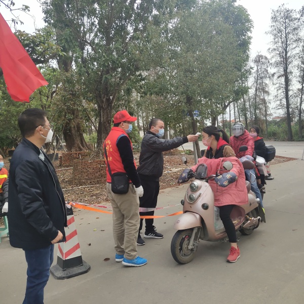 2020年2月8日,11名組員開始參與協(xié)助鎮(zhèn)、新平村、平四村等開展的疫情防控志愿工作。組員們主動犧牲寒假假期,沖鋒在鎮(zhèn)、村各個(gè)路口的檢疫工作一線,他們主要在路口檢疫點(diǎn)協(xié)助設(shè)卡測體溫,路口檢疫工作,過往車輛多,人流量大,任務(wù)重;他們每天按時(shí)到崗,工作6至7個(gè)小時(shí),以實(shí)際行動為黨徽增輝、為黨旗添彩。