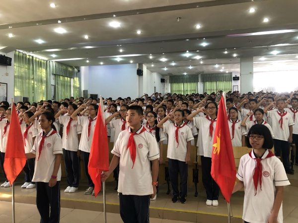2019年6月3日下午,浪網(wǎng)中學(xué)在學(xué)校階梯教室舉行“告別紅領(lǐng)巾,迎接青春”少先隊退隊儀式。活動由團委副書記,大隊輔導(dǎo)員陳比比老師主持。