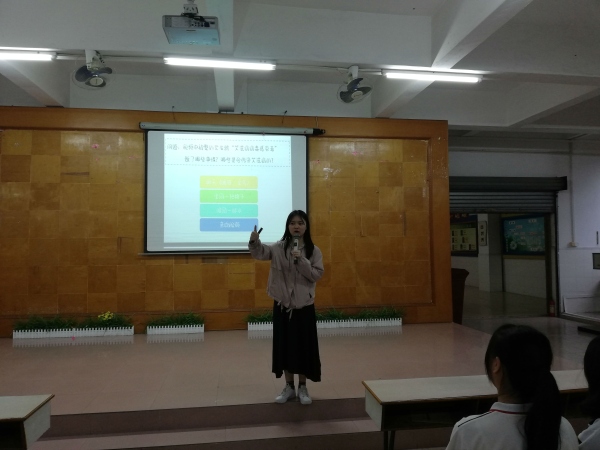2019年12月16日下午第八節(jié),民眾中學(xué)開(kāi)展艾滋病與女生青春期專(zhuān)題講座。此次講座由廣州嶺南伙伴社區(qū)支持中心的樂(lè)兒老師主講,主要圍繞女生青春期生理和心理方面的變化、青春期異性之間的交往、艾滋病的認(rèn)識(shí)和預(yù)防等內(nèi)容展開(kāi)。