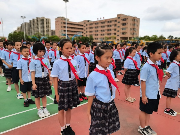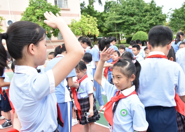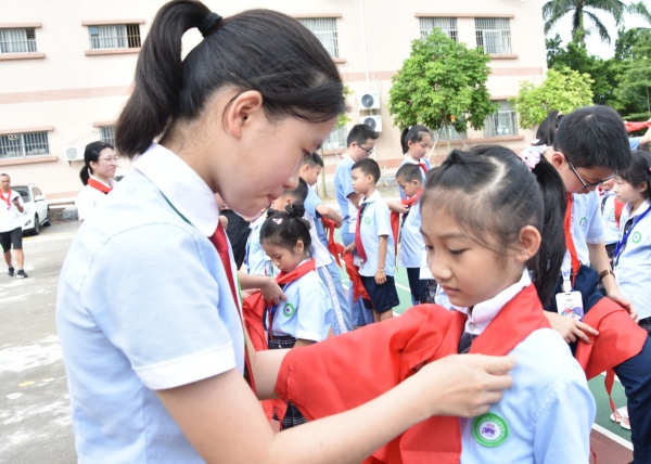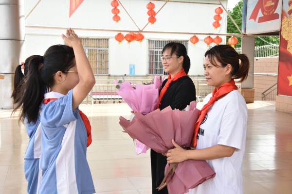 為培養(yǎng)學(xué)生主人翁意識,少先隊(duì)員的光榮感和責(zé)任感,在2020年“六一”兒童節(jié)當(dāng)天上午,中山市民眾錦標(biāo)學(xué)校舉行了一年級少先隊(duì)新隊(duì)員入隊(duì)宣誓儀式,本次一年級共有李君杰等210位新隊(duì)員光榮地加入了中國少年先鋒隊(duì)。在舉行少先隊(duì)入隊(duì)儀式前,錦標(biāo)學(xué)校少先隊(duì)員代表向抗擊疫情及返校復(fù)學(xué)工作中付出辛勤勞動的衛(wèi)生健康副校長林小靈、駐校醫(yī)生高曉穎兩位醫(yī)務(wù)工作者敬獻(xiàn)了鮮花,以表感謝。