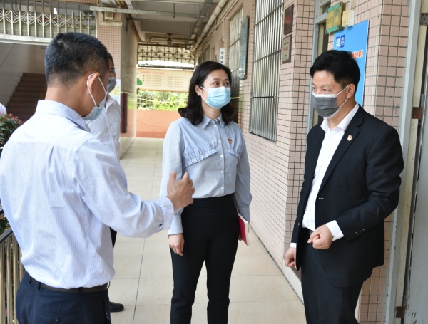 劉委員來到學(xué)校后,進(jìn)入學(xué)生教室、防疫物資儲備室、學(xué)校食堂、留觀室、隔離室等區(qū)域,詳細(xì)了解學(xué)校防疫措施落實(shí)情況,并認(rèn)真聽取錦標(biāo)學(xué)校黃元感校長關(guān)于初三年級學(xué)生返校復(fù)學(xué)的準(zhǔn)備工作和防疫工作情況介紹。