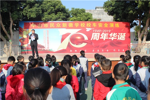 為了確保學(xué)生乘車安全,提高師生在突發(fā)事件時能采取有效的自護(hù)、自救逃生意識,以“學(xué)生安全第一”為宗旨,讓教師能有序帶領(lǐng)學(xué)生上車,快速帶領(lǐng)引導(dǎo)學(xué)生安全疏散,努力將影響和損失減少到最低程度,確保師生安全。2019年12月12日上午大課間,中山市民眾新徽學(xué)校舉行了安全乘車與緊急疏散演練活動。