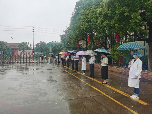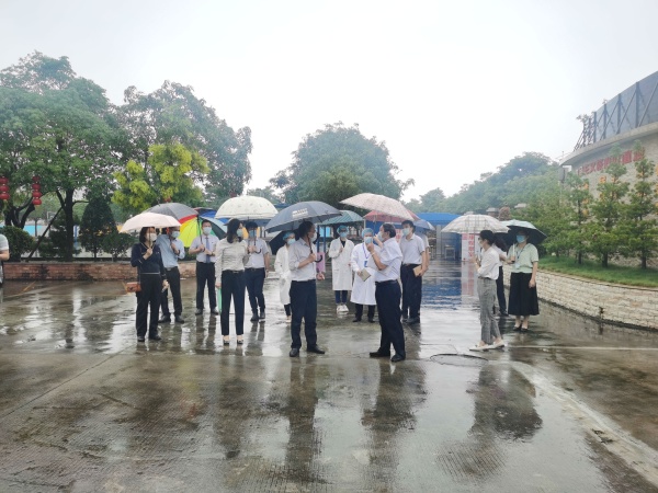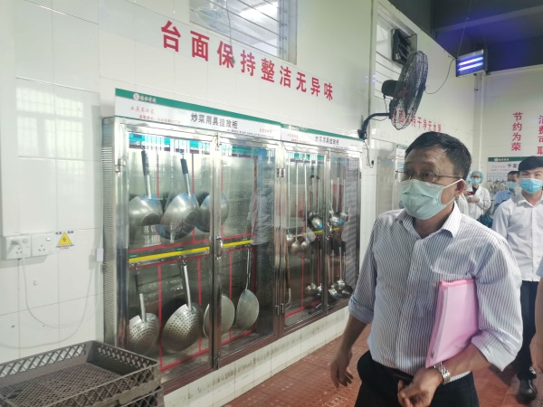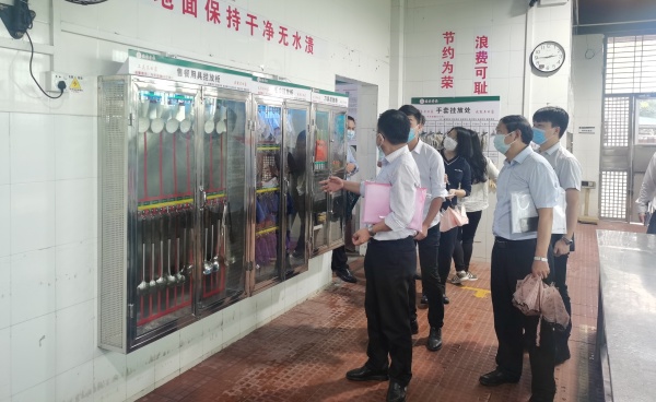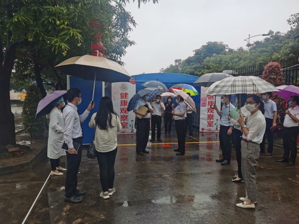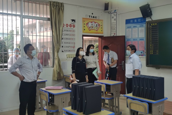 當天,德恒校園里流連春光,舍不得凋零的幾支紫荊花被南國的驟雨擊落一地,落英繽紛,美麗極了。下午2:00,德恒學校全體行政滿懷信心在校門口列隊迎接市高三、初三復學防控工作專班的到來。2:30左右,市教育工委廖誠副書記帶領(lǐng)的驗收專班,在民眾鎮(zhèn)黨委劉釗妍委員和民眾鎮(zhèn)教指中心黃海文主任的引領(lǐng)下,來到德恒學校。一行人在學校門口測完體溫和進行必要消毒后,隨即開始了對德恒學校高三、初三復學防控準備工作的實地查驗。驗收專班一行人首先來到學校健康觀察室,查看了觀察室的防疫物質(zhì)配備,檢查了消毒通風情況。接著來到學生宿舍,看到德恒學校學生宿舍干凈整潔,通風良好,了解了學校初三、高三學生全部寄宿,每間宿舍只安排三名學生等情況。隨后查看了食堂操作間和學生餐廳,他們不僅對食堂的整潔規(guī)范給予了高度評價,還特別對學校安排班主任和行政陪同就餐管理學生的這個細節(jié)提出了贊賞。再接著一行人查看了學校保健室、防疫物資儲備室、教室。最后,就地在備用教室召開了反饋會。在會議中,廖書記說,他幾年前來過此地,但當時還不叫德恒學校,今天再到這里,他對德恒兆業(yè)教育集團接收這所學校后帶來的巨大變化感到驚喜和意外。他同時強調(diào),德恒學校這次高三、初三復學防控準備工作完成得非常好,要學校及時總結(jié)做法和經(jīng)驗,并將其推廣到后續(xù)其他年級的復學防控準備工作中,甚至要在民眾鎮(zhèn)乃至中山市加以推廣,并最后激勵德恒全體行政要再接再厲。