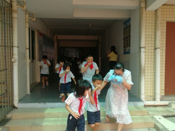午休結(jié)束后,隨著警報(bào)響起,學(xué)生迅速按照老師的指示,用衣服或者濕毛巾輕捂口鼻,扶墻彎腰前進(jìn),在不到5分鐘的時(shí)間內(nèi),各班的學(xué)生都安全地從生活區(qū)撤離到預(yù)設(shè)的安全集合點(diǎn)。此次演練為保障師生安全,安全處在各通道重要位置均安排有老師指揮,確保學(xué)生是從安全逃生路線有序地撤離。來(lái)到安全集合點(diǎn),各班班干部配合班主任迅速清點(diǎn)本班人數(shù)并排隊(duì)報(bào)告給領(lǐng)導(dǎo)部門,確保不遺漏任何一個(gè)人。