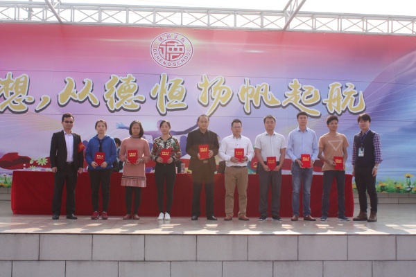 最后,開學(xué)典禮還舉行了隆重的教師表彰儀式。學(xué)校德育處楊寵主任、辦公室華紹文主任、教導(dǎo)處鄧新軍主任和安全處葉寶山主任分別為上學(xué)期榮獲“優(yōu)秀教師”稱號的老師頒獎。然后王校長親自為“優(yōu)秀班主任”們頒發(fā)榮譽證書,以表彰他們春風(fēng)化雨,潤物無聲的工作精神,同時也號召全體教師向他們學(xué)習(xí)與致敬。