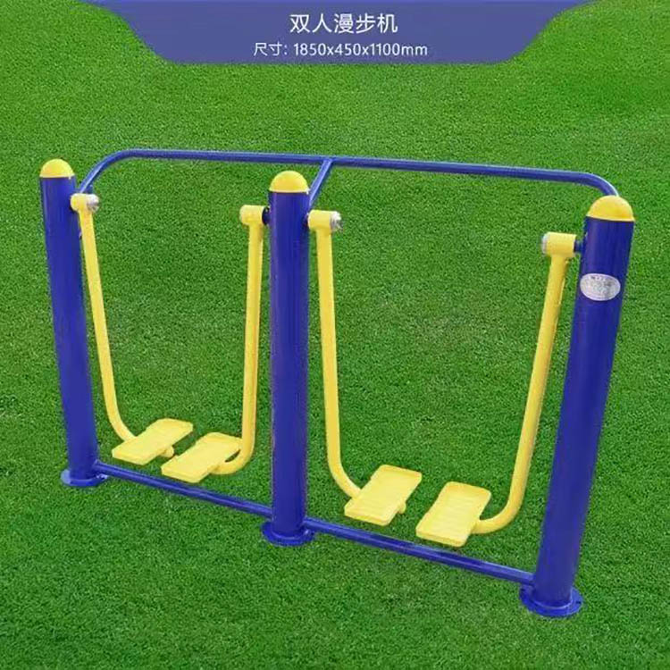 漫步機(jī)、雙人漫步機(jī)、告示牌、橢圓機(jī)、跑步機(jī)、雙人坐凳、三人轉(zhuǎn)腰器、二人轉(zhuǎn)腰器、雙外浪板、平步機(jī)、推揉器、雙人大轉(zhuǎn)輪、腰背按摩器、雙人坐拉、雙人坐推、劃船器、單柱雙杠、引體架、腹肌板、伸腰伸背架、蹺蹺板、立式健騎機(jī)、臂力訓(xùn)練器、上肢牽引器、棋牌桌、四位壓腿器、腿部按摩器、雙杠、單杠、天梯等。