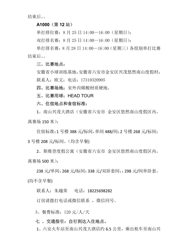 2019年全國青少年網球積分排名系列賽(六安站)補充通知