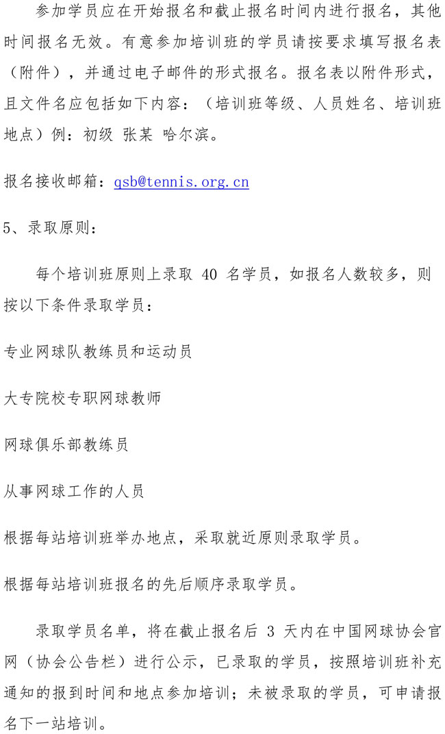 2019年中國網球協(xié)會初級、中級教練員培訓班報名表