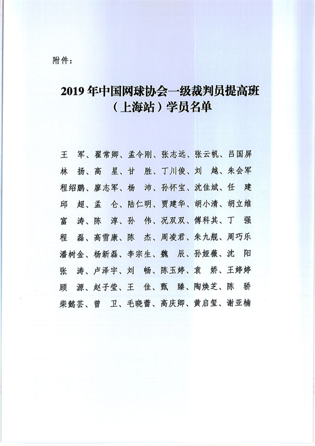 2019年中國網(wǎng)球協(xié)會一級裁判員提高班(上海站)補充通知