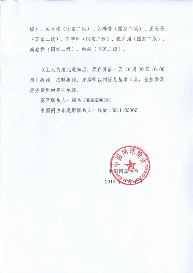 關(guān)于選派2019年中國業(yè)余網(wǎng)球公開賽濟南白金賽技術(shù)官員的通知