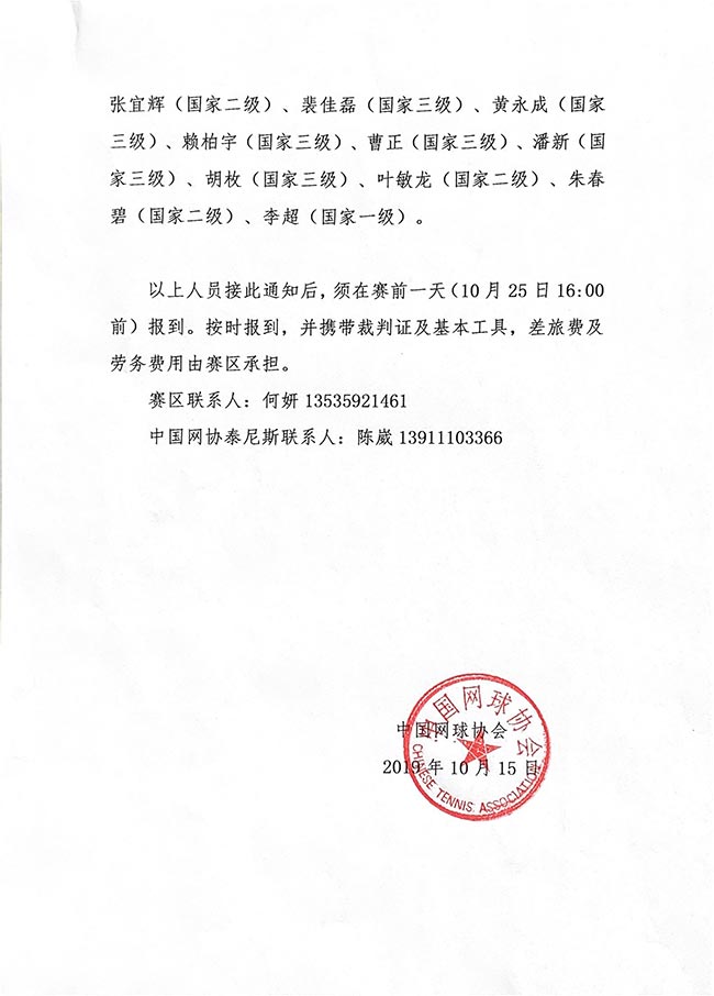 關(guān)于選派2019年中國(guó)業(yè)余網(wǎng)球公開賽深圳皇冠賽技術(shù)官員的通知