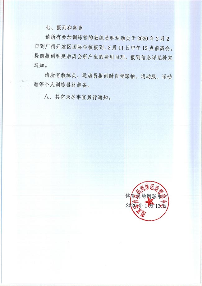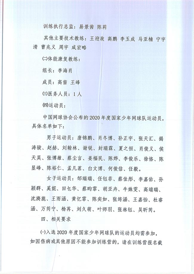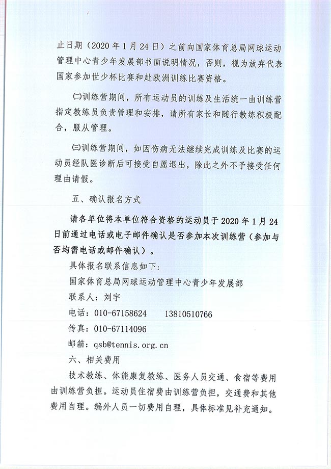 2020年國家青年網(wǎng)球隊(duì)訓(xùn)練營補(bǔ)充通知