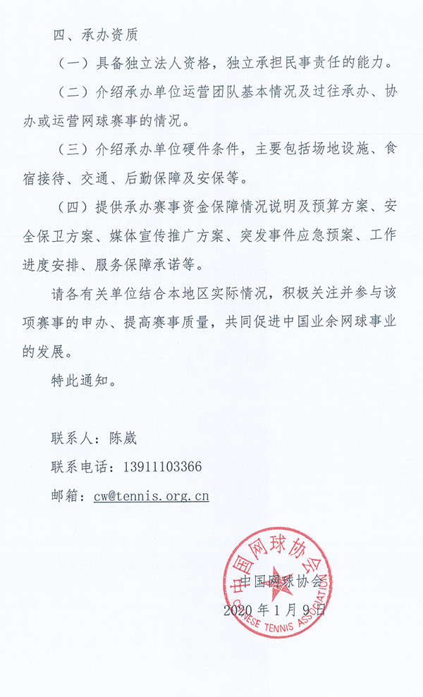 關(guān)于征集2020年中國(guó)業(yè)余網(wǎng)球公開(kāi)賽分站賽承辦單位的通知