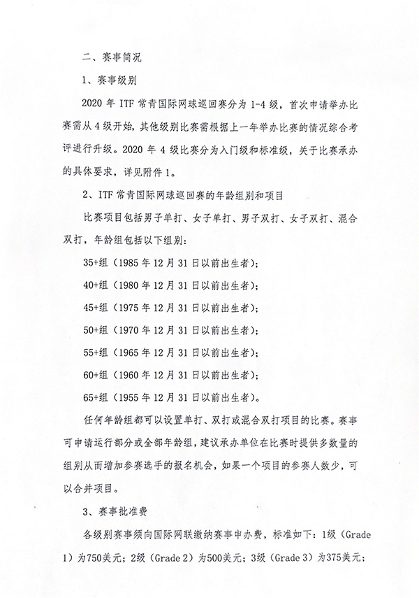 關于公開征集2020年ITF常青國際網(wǎng)球巡回賽(國際網(wǎng)聯(lián)元老賽)承辦單位的通知