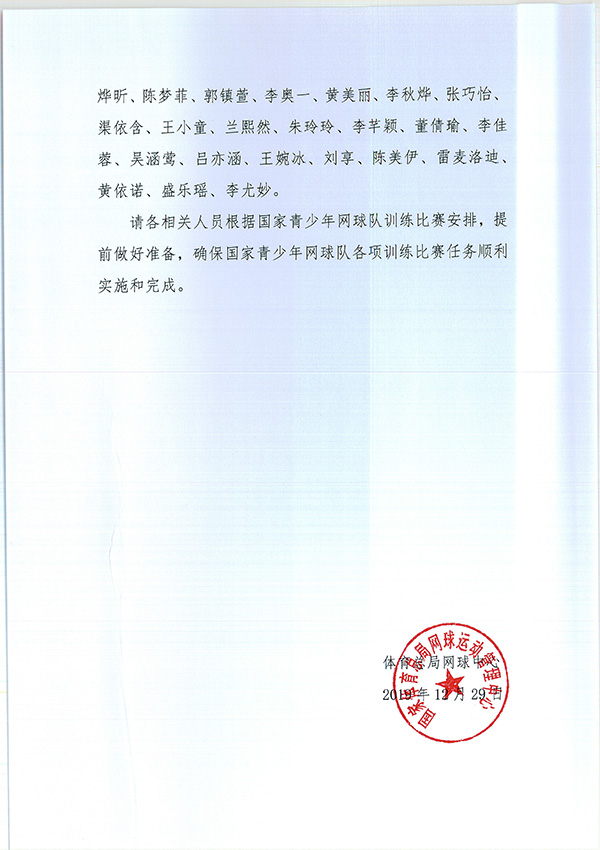 關(guān)于公布2020年國(guó)家青少年網(wǎng)球隊(duì)相關(guān)人員組成名單的通知