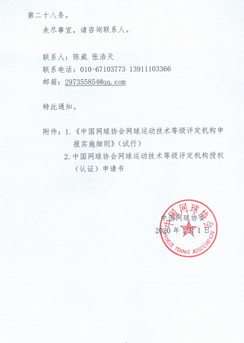 1.中國網(wǎng)球協(xié)會網(wǎng)球運(yùn)動技術(shù)等級評定機(jī)構(gòu)申報(bào)實(shí)施細(xì)則(試行)