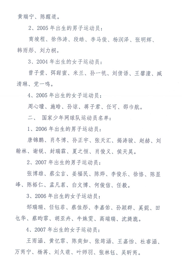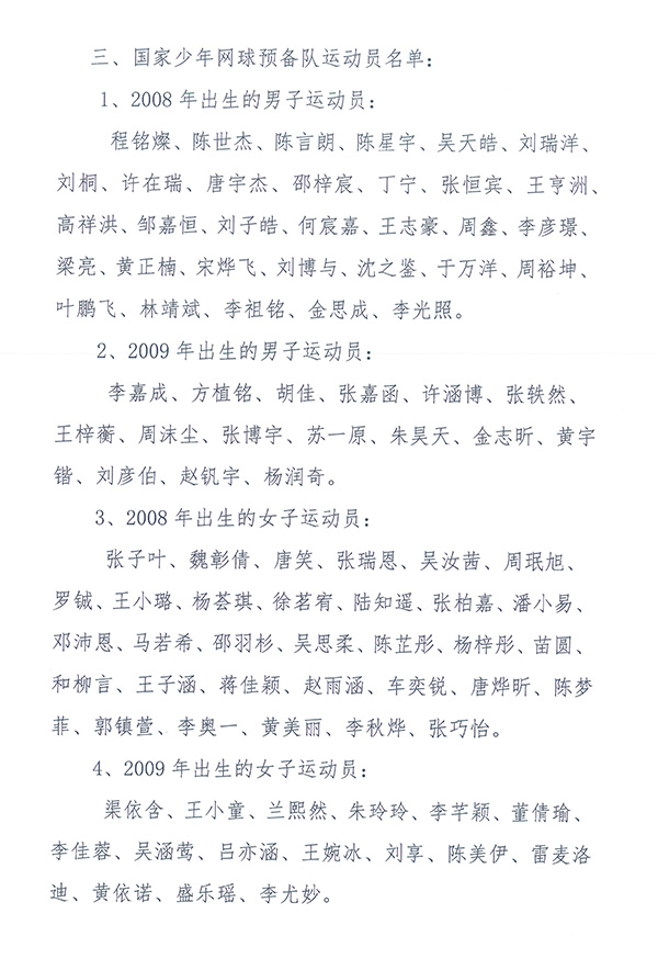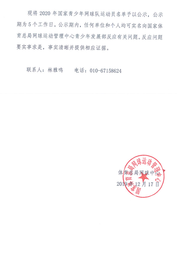 關(guān)于公示2020年度國家青少年網(wǎng)球隊(duì)運(yùn)動員名單的函