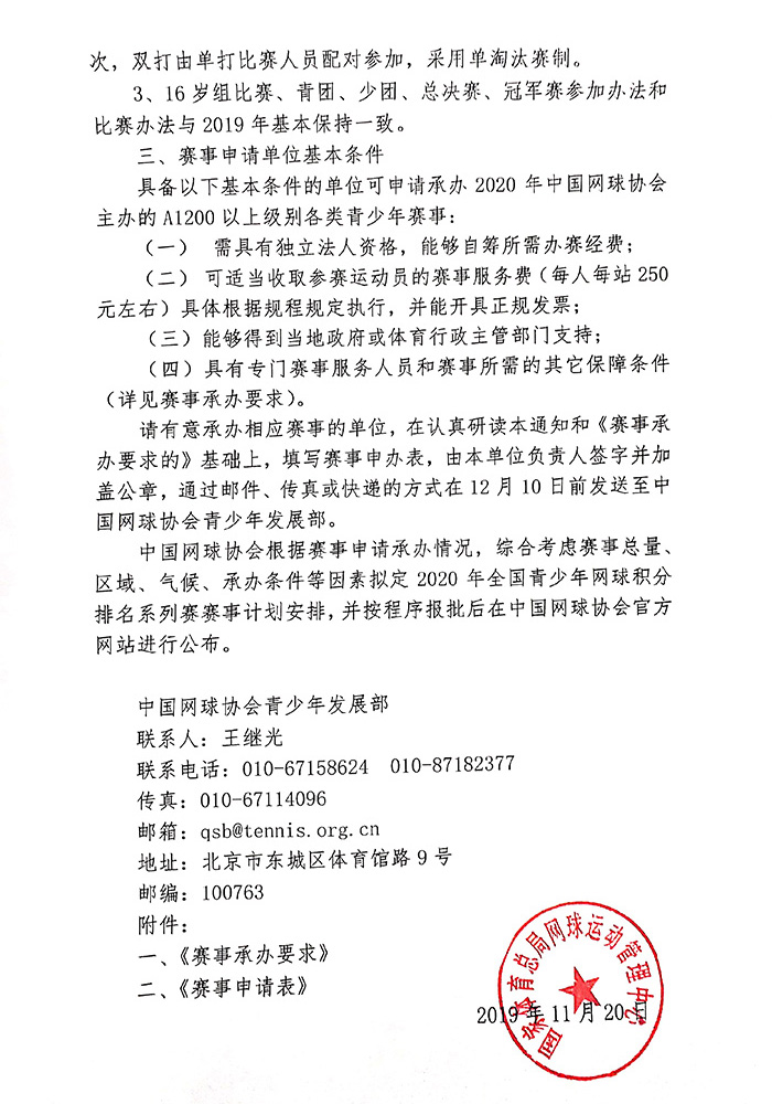關(guān)于公開征集2020年全國青少年網(wǎng)球積分排名系列賽承辦單位的通知
