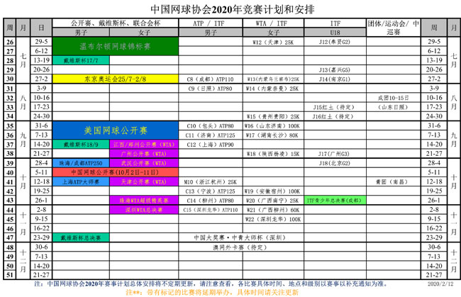 請(qǐng)點(diǎn)擊下載查看PDF版本通知:中國網(wǎng)球協(xié)會(huì)2020年競(jìng)賽計(jì)劃和安排