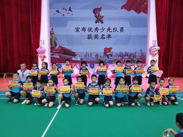 上午10點(diǎn),全校師生在體育館開展“迎接少代會(huì)、爭(zhēng)做好隊(duì)員”“六一”主題教育活動(dòng)。活動(dòng)中,隊(duì)員們匯報(bào)了“廣東紅領(lǐng)巾致敬逆行先鋒”活動(dòng)成果,有的隊(duì)員表演了《預(yù)防病毒拍手歌》,有的隊(duì)員展示了“同心戰(zhàn)疫”繪畫作品,接著進(jìn)行了最激動(dòng)人心的“抗疫小衛(wèi)士章” 頒章活動(dòng)以及同學(xué)們期待已久的“六一”文藝匯演。