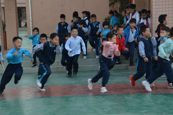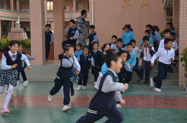 隨著警鈴的響起,疏散演練拉開(kāi)了序幕。學(xué)校領(lǐng)導(dǎo)、老師迅速組織同學(xué)們撤離教室,在全體教師的有序組織下,學(xué)生迅速疏散到操場(chǎng)。撤離過(guò)程中,同學(xué)們時(shí)刻保持警覺(jué),彎著腰、壓低身體迅速前進(jìn),孩子們熟練地利用自己的手或者衣物捂住鼻口,防止煙霧的吸入。樓上的班級(jí)和老師一起下樓梯。在老師的引導(dǎo)下,有序地沿左、中、右3個(gè)樓梯口疏散。從警報(bào)響起到800多名全體師生就位于安全地點(diǎn),用時(shí)2分15秒,疏散演練的效果顯著。同學(xué)們到達(dá)指定疏散地點(diǎn)后,各班立即匯報(bào)人數(shù),班級(jí)班干部向相關(guān)老師報(bào)告疏散情況以及到場(chǎng)人數(shù)。