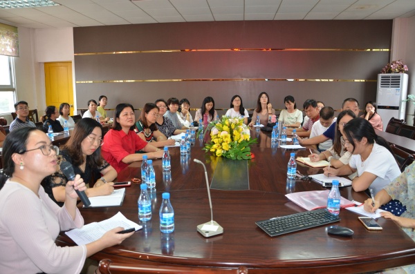 參觀結(jié)束后,兩所學(xué)校所有的班主任在會(huì)議室進(jìn)行班主任工作交流。首先由板芙廣福小學(xué)史妙如老師介紹她的特色班級(jí)“星空之家”,史老師從五個(gè)方面分別介紹了建設(shè)目標(biāo)、班級(jí)環(huán)境、常規(guī)管理、集體活動(dòng)和班級(jí)榮譽(yù)。接著由良都小學(xué)雷曉君老師介紹她的特色班級(jí)“樂陶班”,從建設(shè)背景、理念和目標(biāo)三方面闡述了為什么把班級(jí)特色定為陶泥DIY,并結(jié)合社會(huì)主義核心價(jià)值觀和傳統(tǒng)文化講述了班級(jí)特色打造過程。最后由良都小學(xué)廖路根老師介紹了特色班級(jí)“花樣小編”班,她的班級(jí)編制的花籃、手鏈等手工藝品吸引了在場所有人的目光,一則學(xué)生教編制花籃的視頻贏得了陣陣喝彩。
