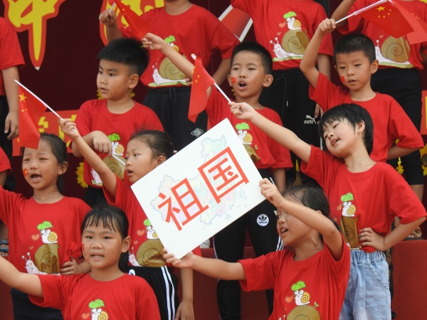 祖國是每個(gè)人心中一首唱不完的歌,當(dāng)《我和我的祖國》熟悉的旋律響起,良都小學(xué)全體師生揮舞手中的小國旗,學(xué)生擺成70字樣,教師擺成愛心形狀,鮮艷的國旗擺放其間。在賴嘉玲輔導(dǎo)員的帶領(lǐng)下,全體師生共同呼號(hào)“祖國萬歲”,鏗鏘有力的呼號(hào)聲響徹良都小學(xué)校園,濃濃愛國之情融入全體師生激情洋溢的血脈,無限的民族自豪感在每個(gè)良小人心中久久激蕩。