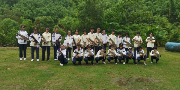 參觀完中山市革命史跡陳列館,同學(xué)們就前往中山市綠色戶外運(yùn)動(dòng)拓展訓(xùn)練基地,參加拓展訓(xùn)練營的活動(dòng)。在拓展訓(xùn)練營里,教官們?yōu)橥瑢W(xué)們精心設(shè)計(jì)了豐富多彩的訓(xùn)練拓展活動(dòng),包括有集體圓形扯大繩、爬繩梯、叢林野戰(zhàn)等等。在協(xié)作互助、緊張刺激、或?qū)嵒蛱摰挠螒蝮w驗(yàn)中,同學(xué)們收獲了成長的幸福和喜悅。