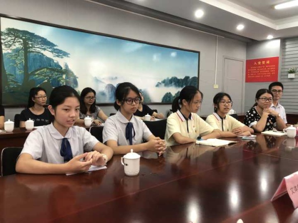 良都中學(xué)德育處副主任陳嫣桃首先作了發(fā)言,她從一次辯論會(huì)的故事開(kāi)始講起,提出學(xué)校在培養(yǎng)良知良行、向真向善、落落大方的良中人方面進(jìn)行的有益探索,提出要增強(qiáng)學(xué)生的內(nèi)在修養(yǎng)自信、文化水平自信、視野開(kāi)拓自信,通過(guò)自主管理、團(tuán)隊(duì)凝聚、主題教育、精彩活動(dòng)等幾個(gè)方面實(shí)現(xiàn)學(xué)生在言行舉止上落落大方;初二7班李柏玲和初二2班林靜同學(xué)也分別分享了自己在參加學(xué)校的團(tuán)隊(duì)活動(dòng)中收獲的成長(zhǎng)點(diǎn)滴,在觀看了習(xí)近平總書記的系列講話視頻后,他們也提出一定要努力學(xué)習(xí),完善自我,以更優(yōu)秀的接班人的姿態(tài)承擔(dān)歷史的重任;池海旻老師從美育的角度出發(fā),結(jié)合南區(qū)僑鄉(xiāng)建筑的寶貴資源開(kāi)展學(xué)生愛(ài)國(guó)愛(ài)鄉(xiāng)教育,通過(guò)攝影、美術(shù)作品等載體,展現(xiàn)僑鄉(xiāng)風(fēng)土人情、增強(qiáng)接班人的民族自尊心、民族文化的自信心和自豪感;溫婷婷老師從《流浪地球》同名電影郭帆追夢(mèng)的故事引入,分享了自己教育追夢(mèng)的經(jīng)歷,鼓勵(lì)班級(jí)學(xué)生敢于有夢(mèng)、勇于追夢(mèng)、勤于圓夢(mèng),并給他們制定了三年的發(fā)展規(guī)劃:初一樹立夢(mèng)想、初二追夢(mèng)、初三圓夢(mèng);團(tuán)委書記陳樂(lè)貞也分享了自己假期出游多個(gè)國(guó)家后對(duì)比產(chǎn)生的感受以及曾在良都中學(xué)任教的外籍老師對(duì)擴(kuò)建后的良都中學(xué)辦學(xué)環(huán)境和條件的肯定贊賞,表達(dá)了作為中國(guó)人的滿滿幸福感以及她在開(kāi)展團(tuán)工作尤其是宣講團(tuán)課過(guò)程中,采用多種形式吸引團(tuán)員積極參與,受到團(tuán)員們的熱捧……良都中學(xué)師生代表的發(fā)言獲得了在場(chǎng)領(lǐng)導(dǎo)、老師的好評(píng)。