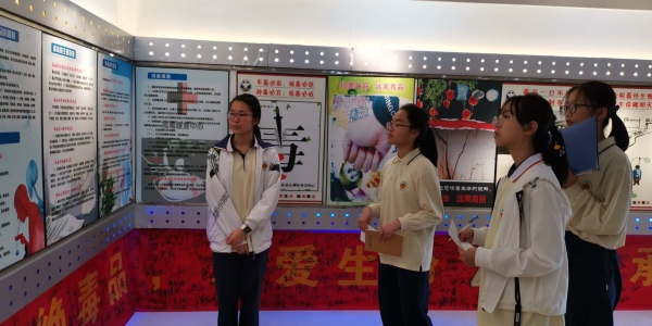 近日,為繼續(xù)加強(qiáng)對(duì)學(xué)生的禁毒教育,讓學(xué)生對(duì)毒品的性質(zhì)、危害有更加深刻的了解,良都中學(xué)安排各班學(xué)生代表參觀了南區(qū)禁毒教育基地,并且讓初三4班的吳宇捷同學(xué)作為解說(shuō)員,跟參觀的同學(xué)作現(xiàn)場(chǎng)的解說(shuō)。