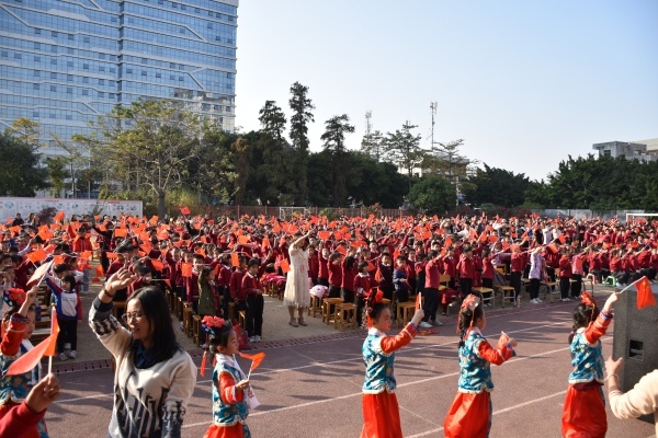 現(xiàn)場氣氛高潮迭起,臺上臺下的現(xiàn)場互動之聲更是此起彼伏,精彩的表演不時博得現(xiàn)場觀眾陣陣熱烈的掌聲,喜慶歡樂的氣氛洋溢在舞臺的每一個角落,精彩的節(jié)目讓校園充滿了歡笑和溫馨。最后,全體小演員們和在場的所有師生、家長們齊唱《我和我的祖國》來表達(dá)對祖國的熱愛和那顆熾熱的赤子之心。