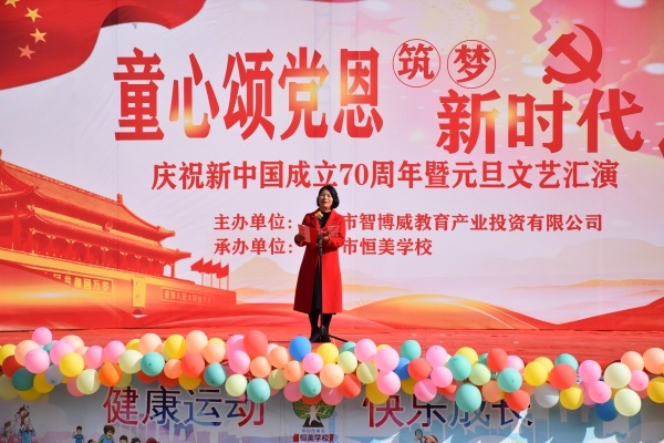 為慶祝新中國成立70周年,值2020年元旦來臨之際,為了豐富學(xué)生的校園生活,提高學(xué)生的活動能力,促進(jìn)學(xué)生的全面發(fā)展,營造文化氛圍,以豐富多彩的形式辭舊迎新,2019年12月27日下午,恒美學(xué)校舉行題為“童心頌黨恩,筑夢新時代”——慶祝新中國成立70周年暨元旦文藝匯演的活動。