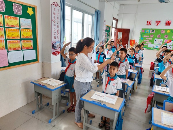 為激發(fā)隊(duì)員愛(ài)黨愛(ài)國(guó)愛(ài)隊(duì)的熱情,增強(qiáng)少先隊(duì)員的光榮感和使命感,6月22日上午,南區(qū)北臺(tái)小學(xué)組織開(kāi)展了“紅領(lǐng)巾心向黨”少先隊(duì)敬隊(duì)禮活動(dòng)。
