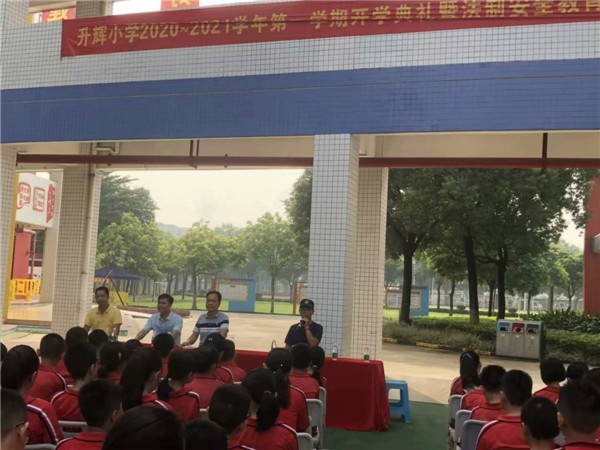 典禮上南頭鎮(zhèn)關(guān)工委副主任黃祺宗爺爺為開(kāi)學(xué)典禮致辭,在振奮人心、語(yǔ)重心長(zhǎng)的話語(yǔ)中,他對(duì)老師們和同學(xué)們寄予了殷切期望。隨后升輝派出所民警何榮彬警、南頭鎮(zhèn)交警大隊(duì)宣講員鐘警員和南頭鎮(zhèn)消防中隊(duì)副隊(duì)長(zhǎng)王曉和羅俊昌消防員分別對(duì)孩子們進(jìn)行自我保護(hù)安全教育、交通安全教育和消防知識(shí)教育,希望孩子們?cè)谛碌膶W(xué)期能夠健康成長(zhǎng),做一個(gè)守法懂法的好孩子、好公民!