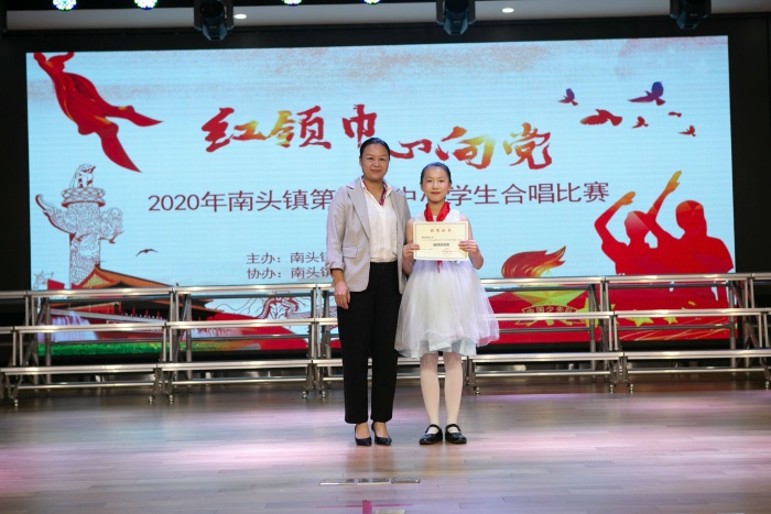 此次比賽的目的是為展示南頭鎮(zhèn)素質(zhì)教育的成果,營(yíng)造一個(gè)良好的音樂(lè)藝術(shù)氛圍,提高中小學(xué)生的合唱水平,激發(fā)學(xué)生熱愛祖國(guó),熱愛學(xué)校,熱愛生活,南頭鎮(zhèn)升輝小學(xué)合唱團(tuán)根據(jù)比賽要求,分別演唱了《不忘初心》與《黑貓警長(zhǎng)》。指揮由該校江婷婷老師擔(dān)任,成穎芊老師擔(dān)任鋼琴伴奏、馮偉興老師擔(dān)任非洲鼓伴奏。在合唱團(tuán)的演繹下,兩首作品的不同風(fēng)格被表現(xiàn)得淋漓盡致,最終獲得二等獎(jiǎng)和最佳創(chuàng)意獎(jiǎng)的好成績(jī)。