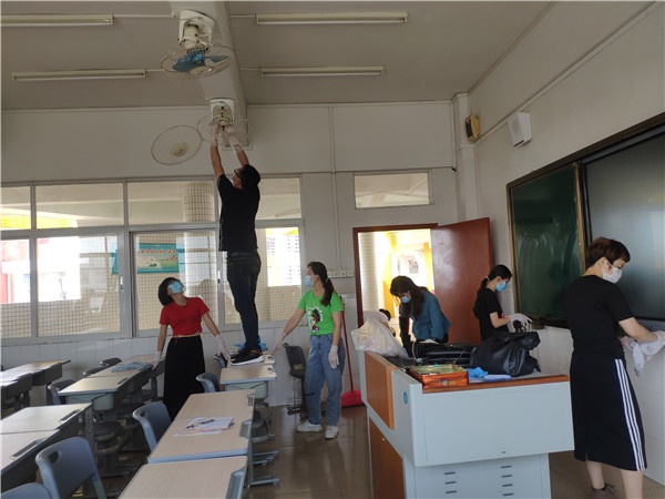 2020年的五一勞動節(jié),升輝小學(xué)的部分家長代表和全體老師們犧牲小假期,主動參與學(xué)校開展的返學(xué)大清潔行動中來,讓這個勞動節(jié)更加有意義。家長們在班主任、老師的指導(dǎo)和分配下,分別對教室、教師辦公室、走廊、圍欄等處進(jìn)行清潔。校園內(nèi),教學(xué)樓上下,辦公室里外,隨處可見家長忙碌的身影,有的抹桌子,有的拖地板,有的搬桌椅,有的擦風(fēng)扇、有的倒垃圾……家長們臉上都掛滿汗珠,但卻快樂地忙碌著。