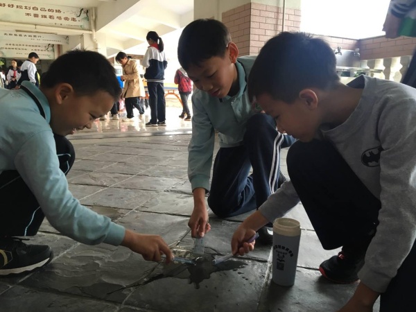 開學(xué)前學(xué)校開展校容校貌檢查,發(fā)現(xiàn)在不少樓道或班級(jí)的地板上有香口膠污跡。這些污跡有如狼瘡一樣長(zhǎng)在美麗的校園,影響著校容校貌,也侵蝕了校風(fēng)建設(shè)。為了改善校園環(huán)境,恢復(fù)校園整潔面貌,好習(xí)慣培養(yǎng)中心聯(lián)合大隊(duì)部、三鑫學(xué)校關(guān)工委特開展了一場(chǎng)“除污體驗(yàn),相約成長(zhǎng)”的活動(dòng)。