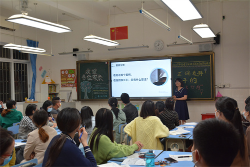 本次活動首先由低年級級長肖清嫻進行主題發(fā)言,她結(jié)合自己的德育實踐和管理經(jīng)驗,從主題班會課的定義、班會主題的確立、班會課的策劃以及深化鞏固成果等方面進行了闡述:選題切入點要小,從急切需要解決的問題出發(fā);借助班會課專屬的評價機制提高班會課的有效性……給班主任們帶來新的啟發(fā)。