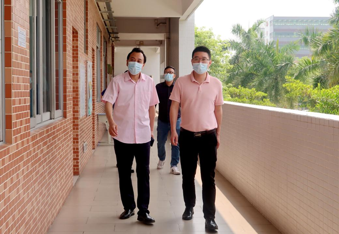 4月12日上午,順德區(qū)教育局高教職教科李博副科長、楊炳光老師到江義中學開展疫情防控和線上教學工作檢查。勒流街道教育教學研究室副主任朱湘紅,江義中學校長胡和秋陪同。