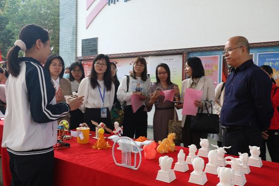 在李少強(qiáng)校長(zhǎng)的帶領(lǐng)下,領(lǐng)導(dǎo)和新興的同行們察看了校園環(huán)境文化,觀看了學(xué)校的創(chuàng)智·科漫節(jié)的成果展示,饒有興致地聽了學(xué)生關(guān)于小小科學(xué)家、紙橋承重、蘿卜搭高塔、變廢為寶、3D打印等現(xiàn)場(chǎng)解說,被孩子們的觀察力、學(xué)習(xí)力、思維力、動(dòng)手能力和表達(dá)能力深深吸引著。