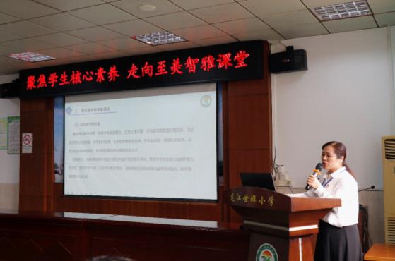 黎愛葉主任以《單元整合教學(xué)新視角,學(xué)科核心素養(yǎng)新探索》為題淺談了學(xué)校英語科組建設(shè)的思路和做法