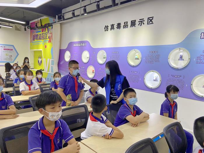 活動現(xiàn)場,禁毒社工通過ppt講解,給同學們介紹了毒品的基本知識、毒品的危害以及如何預防毒品等方面的內(nèi)容重點講解了第三代新精神活性物質(zhì)的種類和危害。并且通過帶領(lǐng)同學們參觀仿真毒品展示區(qū),法制宣傳教育區(qū),宣傳國家有關(guān)禁毒的法律規(guī)定。同學們在禁毒游戲體驗區(qū)戴上VR眼鏡體驗濫藥后的帶來身體暈眩感,禁毒社工告誡同學們要懂得珍愛生命,遠離毒品。