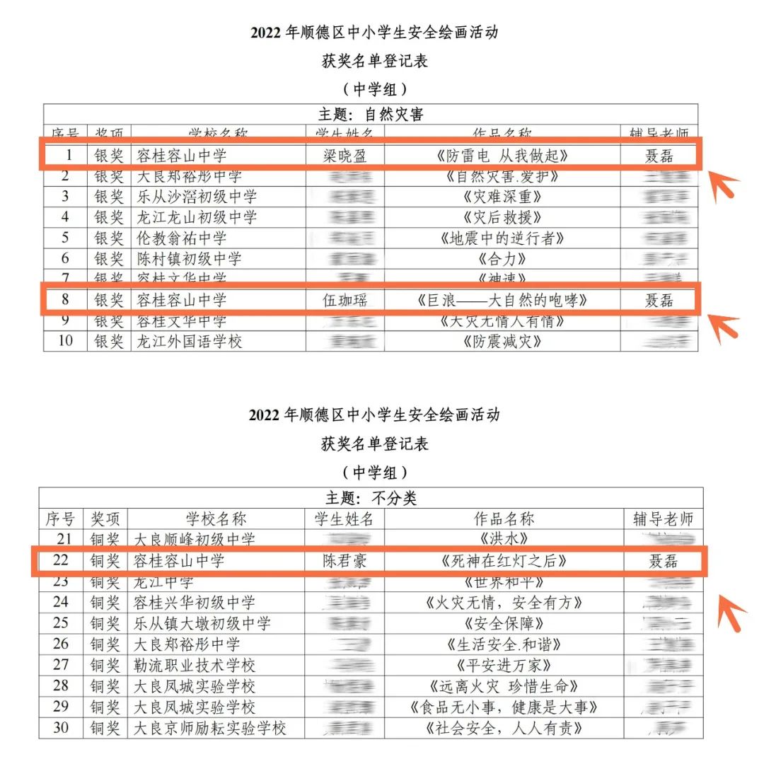 近日,佛山市順德區(qū)應(yīng)急管理局、佛山市順德區(qū)教育局公布了2022年順德區(qū)中小學(xué)生安全繪畫活動獲獎名單,我校學(xué)子喜獲兩銀一銅的好成績。 今年6月是第21個全國“安全生產(chǎn)月”,主題是“遵守安全生產(chǎn)法,當(dāng)好第一責(zé)任”。為了在順德區(qū)中小學(xué)校營造濃厚的安全氛圍,增強中小學(xué)生安全意識,弘揚中華文化,區(qū)應(yīng)急管理局、區(qū)教育局于今年安全生產(chǎn)月期間在全區(qū)各中小學(xué)校開展了“2022 年順德區(qū)中小學(xué)生安全繪畫”活動,我校美術(shù)老師聶磊組織學(xué)生積極響應(yīng)和參與,經(jīng)過師生們的共同努力,經(jīng)過全區(qū)多名參賽者角逐,我校學(xué)生作品脫穎而出,喜獲優(yōu)異成績。