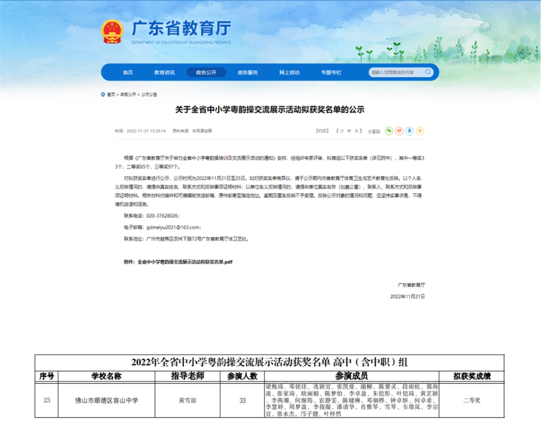向美而行,以美育人。繼上個月容山中學榮獲佛山市中小學粵韻操交流展示活動特等獎后,我校美育再傳捷報!近日,容山中學再獲2022年全省中小學粵韻操培訓及交流展示活動二等獎!