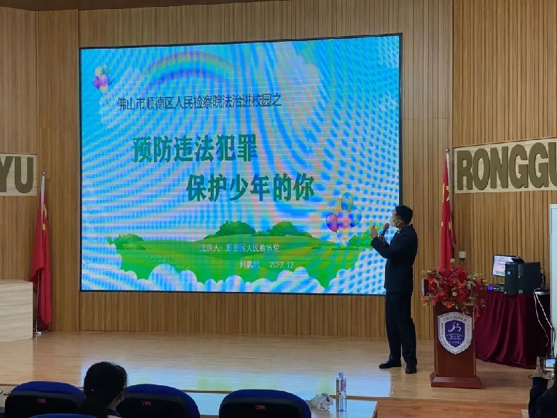 12月16日上午,我校在電教館開(kāi)展“預(yù)防違法犯罪,保護(hù)少年的你”預(yù)防校園欺凌的講座,講座邀請(qǐng)到佛山市順德區(qū)人民檢察院二級(jí)檢察官何鵬輝先生主講。